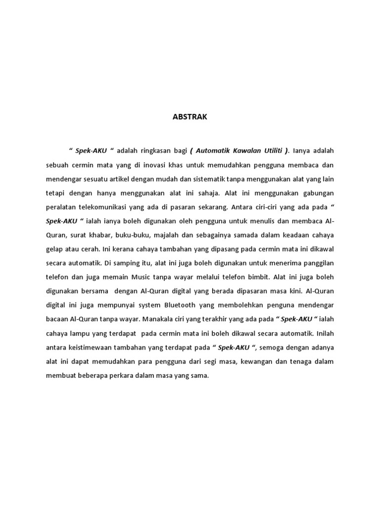 CONTOH FORMAT ABSTRAK ANUGERAH PROJEK INOVASI. Contoh Abstrak Jurnal Bahasa Indonesia 2. ANUGERAH PROJEK INOVASI PERINGKAT NEGERI SARAWAK 2019.